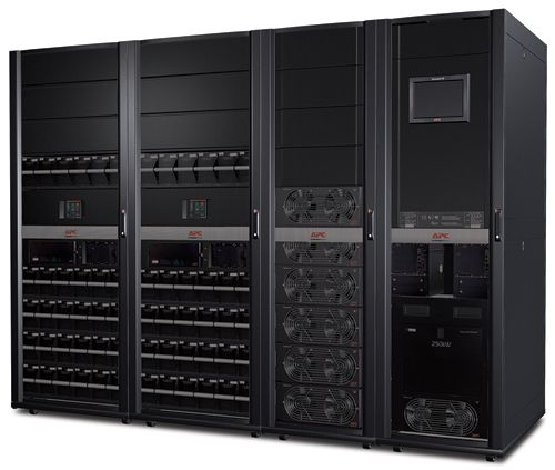 APC SY150K250D. Output power capacity: 500 kVA, Uitgangsvermogen: 500000 W, Ingang operation voltage (min): 400 V. Accu/Batterij oplaadtijd: 3,50 uur. Kleur van het product: Zwart. Certificering: cUL,CE,EN/IEC 62040-2,EN/IEC 62040-3,EN/IEC 62040-1-1,UL 1778,UL 60950-1,UL. Breedte: 3100 mm, Diepte: 1070 mm, Hoogte: 1991 mm